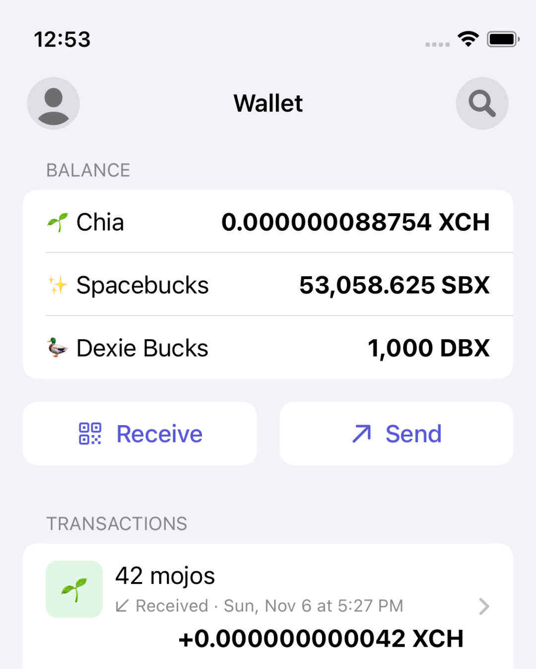 Chia, Spacebucks, Stably USD and more. Unlimited receive addresses.